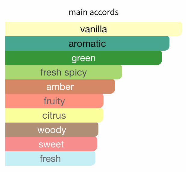 Sweet mint-vanilla-woody; strong, playful, mass appealing.